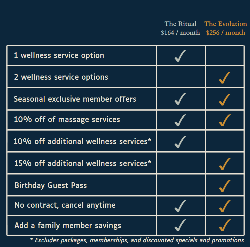 You will also be able to enjoy 15% off any additional wellness services and 10% off massages, annual guest pass during your birthday month, and seasonal member perks.